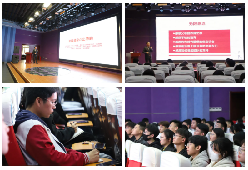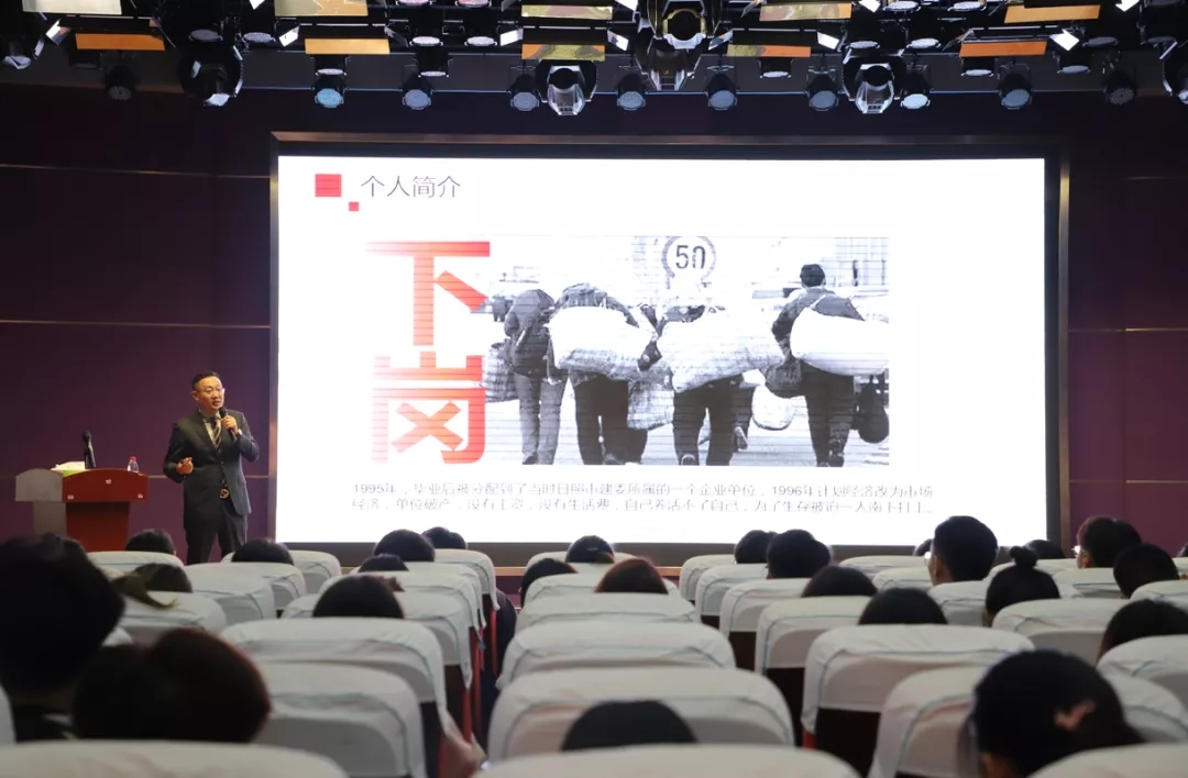 在演講報(bào)告中,張總分享了年少時(shí)母親借錢供其讀書求學(xué)的艱苦往事,單位破產(chǎn)被迫下崗一人南下打工的工作經(jīng)歷。從保安、推銷員、工地臨時(shí)工做起,到資料員、技術(shù)員、施工員、項(xiàng)目經(jīng)理再到恒遠(yuǎn)裝飾集團(tuán)董事長(zhǎng),他用自身理解、感悟勉勵(lì)同學(xué)們?cè)谧穳?mèng)之路上堅(jiān)持學(xué)習(xí),用青春智慧砥礪前行,創(chuàng)造自己的美好未來。其演講結(jié)合自身勵(lì)志故事,催人奮進(jìn),感染著現(xiàn)場(chǎng)的每一位師生。