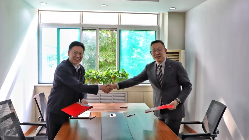 山東城市建設(shè)職業(yè)學(xué)院副院長(zhǎng)劉慶堂(左)恒遠(yuǎn)裝飾集團(tuán)董事長(zhǎng)張軍(右)