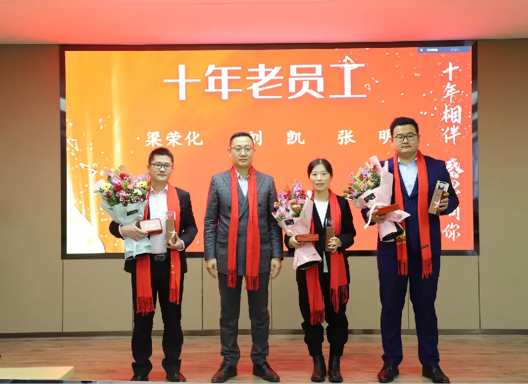 大會還對2021年度涌現出來的優秀個人、集體等進行了通報表彰,在與會人員熱烈的掌聲中,優秀個人、集體、十年老員工、“全國獎”獲獎項目、榮譽爭創獎等獲得者依次走上領獎臺接受表彰。